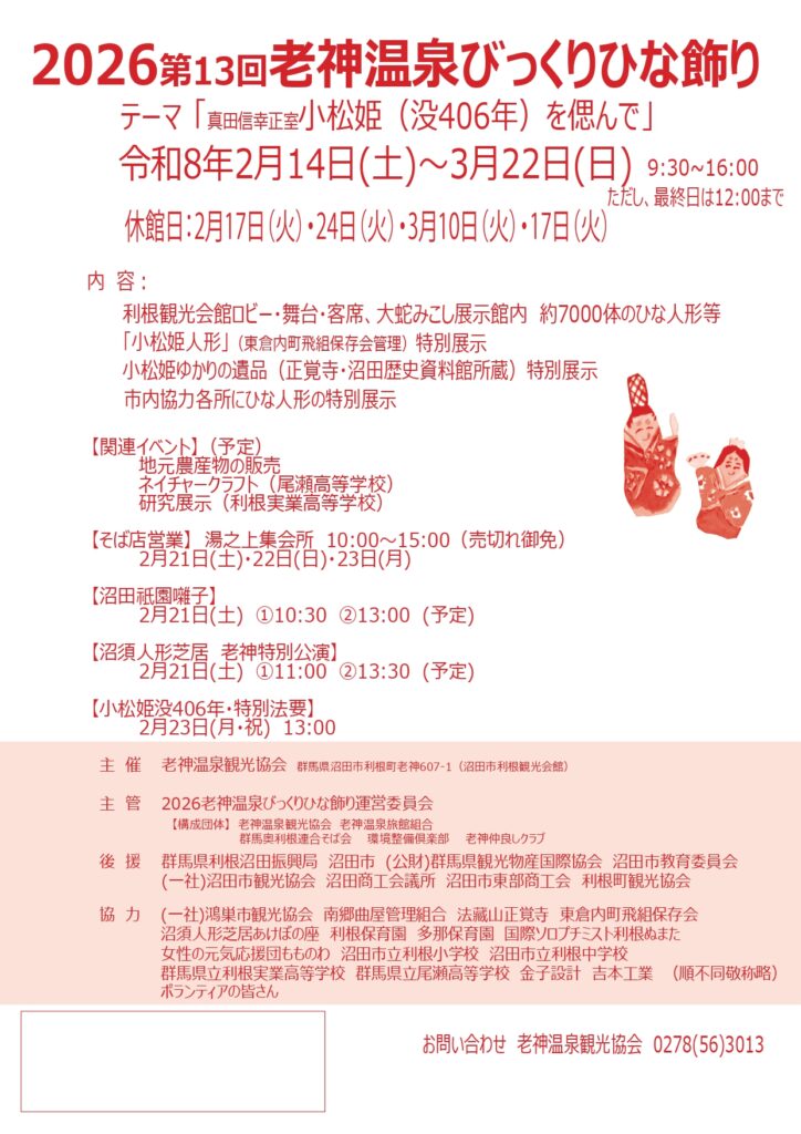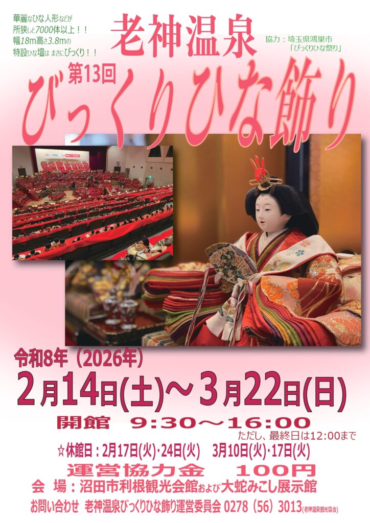 2月14日(土)~3月22日(日)まで老神温泉びっくりひな飾り開催!